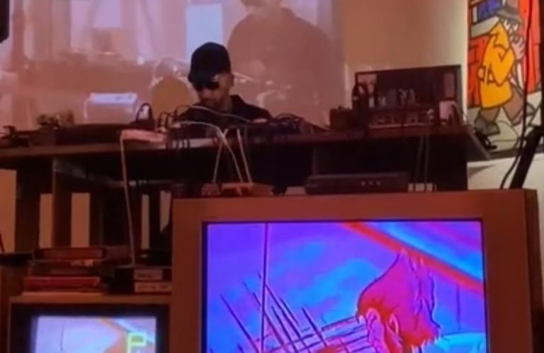 live recording at the dojo with multiple cameras and live visuals on 50+ crts